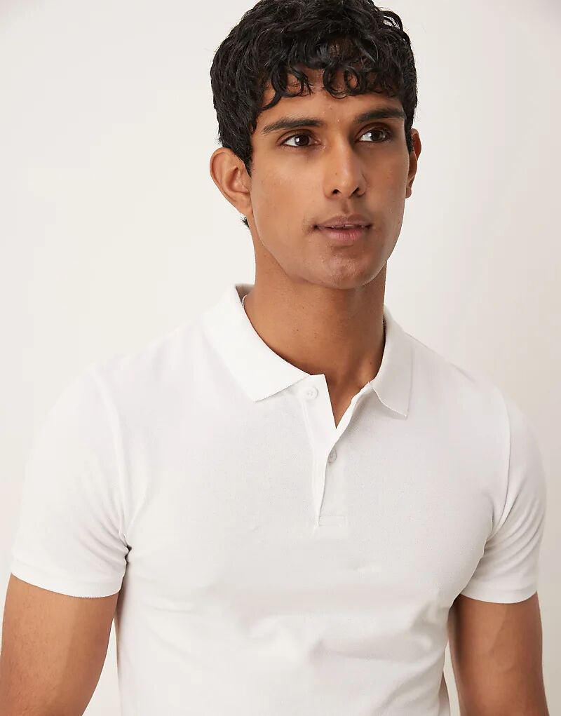 Рубашка-поло ASOS DESIGN Essential Muscle Fit из белого пике