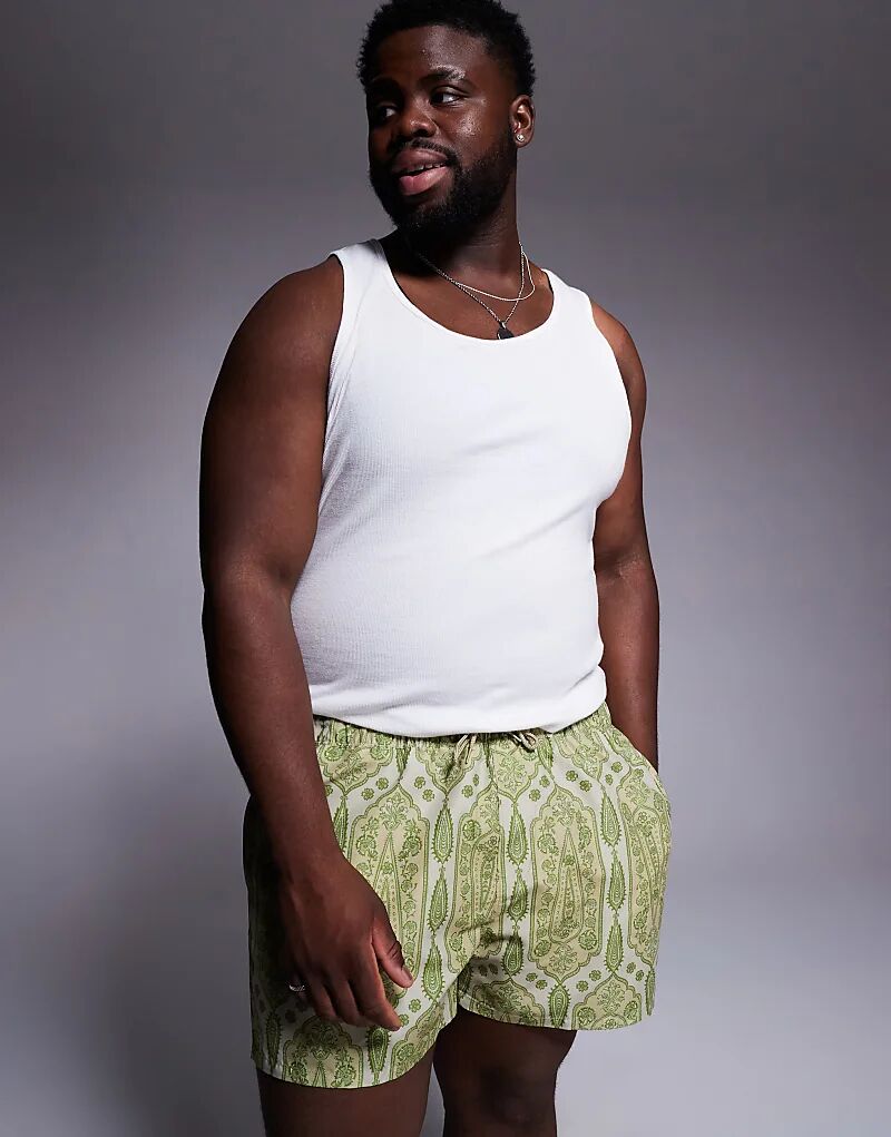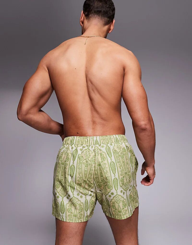 Короткие плавки ASOS DESIGN с зеленым узором пейсли