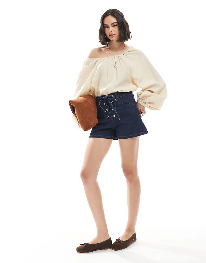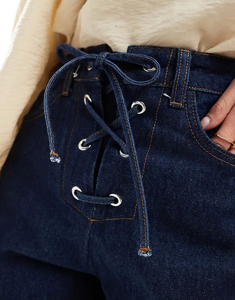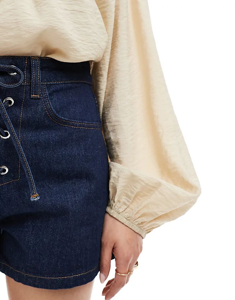 Джинсовые шорты ASOS DESIGN цвета индиго с завязками спереди