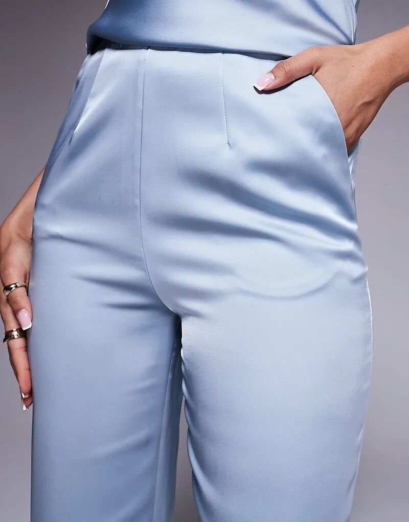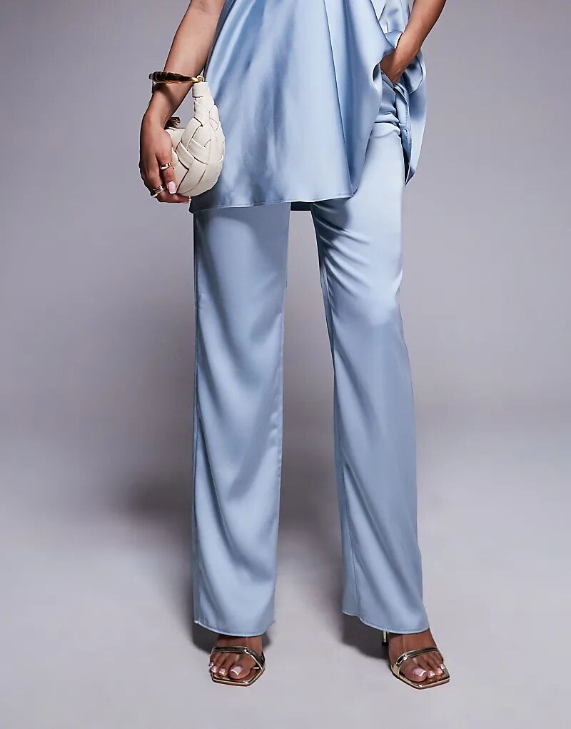 Прямые брюки-клеш из атласа ASOS DESIGN синего цвета