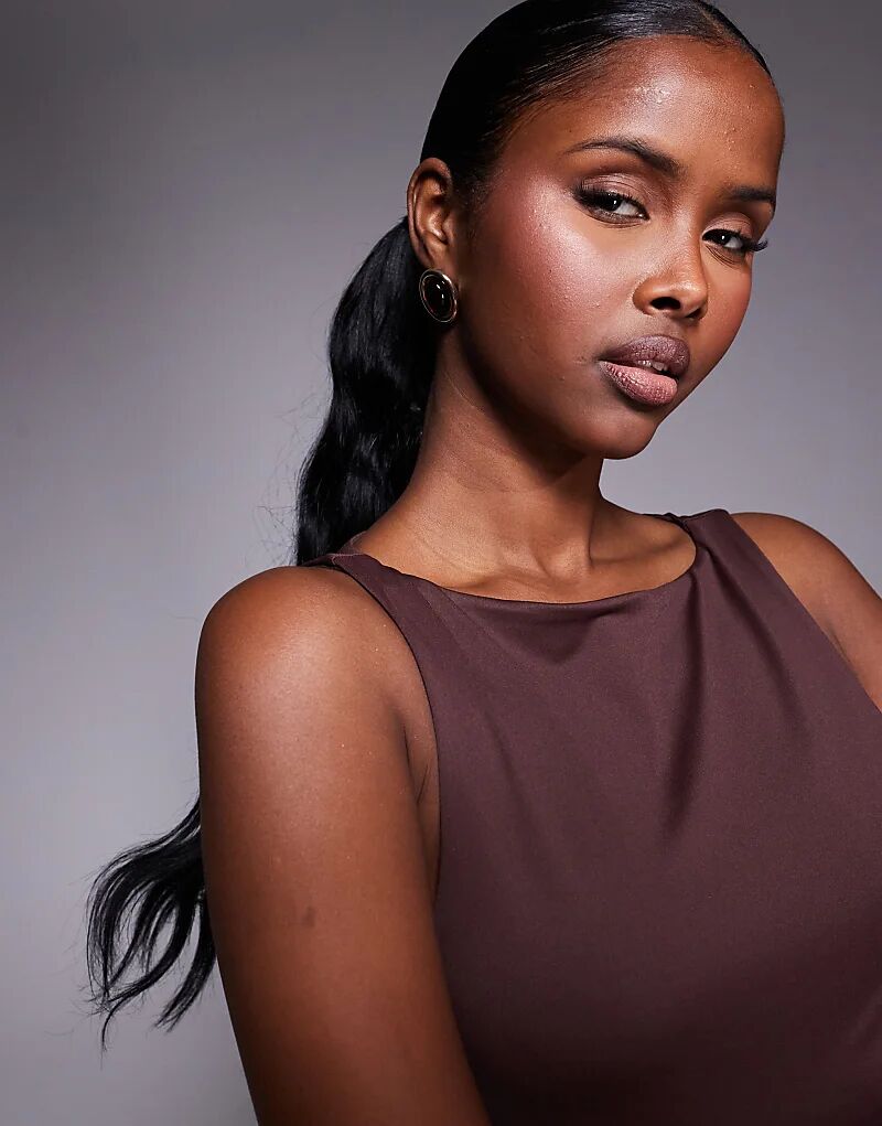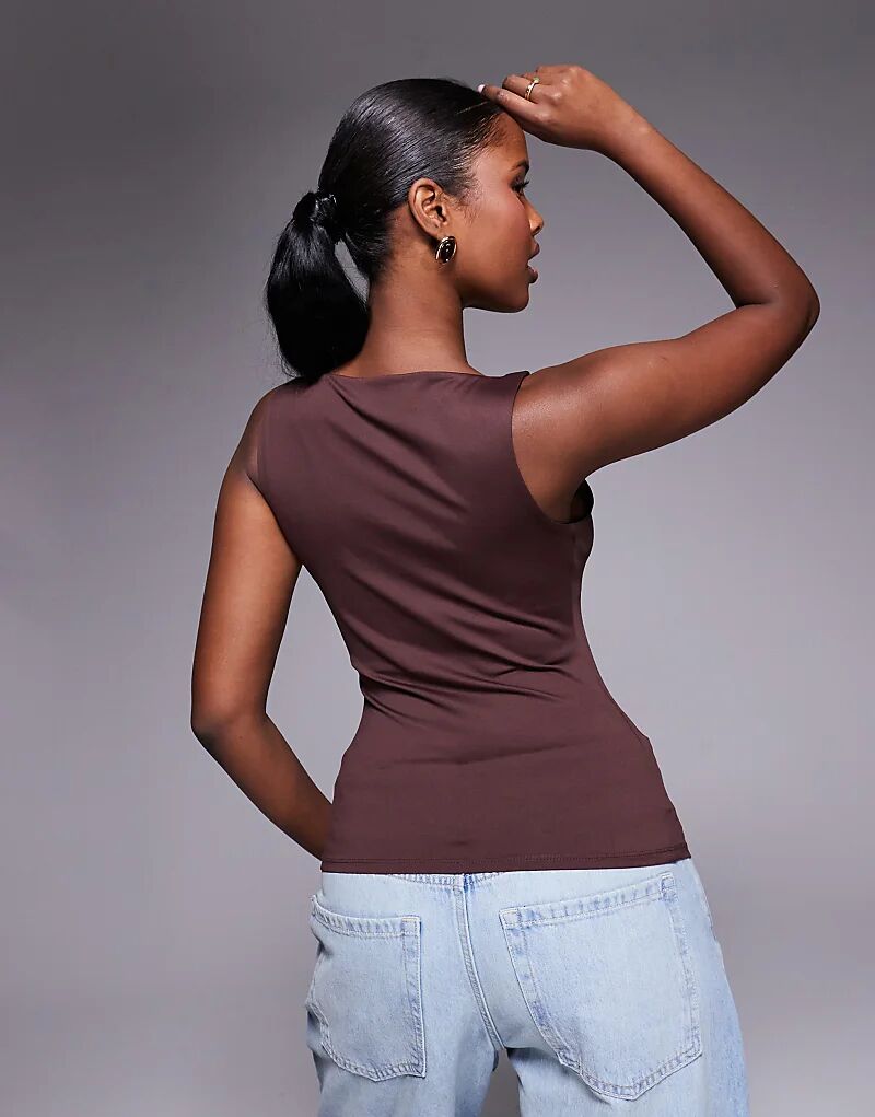 Коричневый топ River Island с асимметричным вырезом горловины