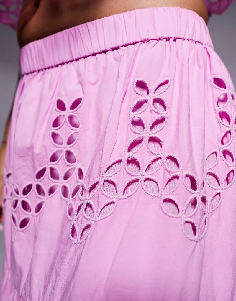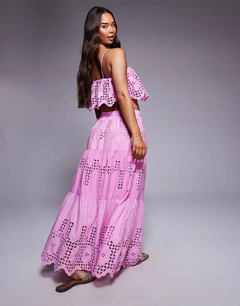 Юбка макси River Island с вышивкой и ришелье, розового цвета