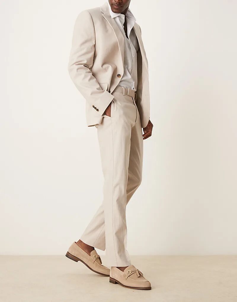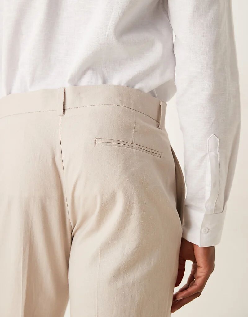 Узкие льняные брюки ASOS DESIGN цвета «камень»