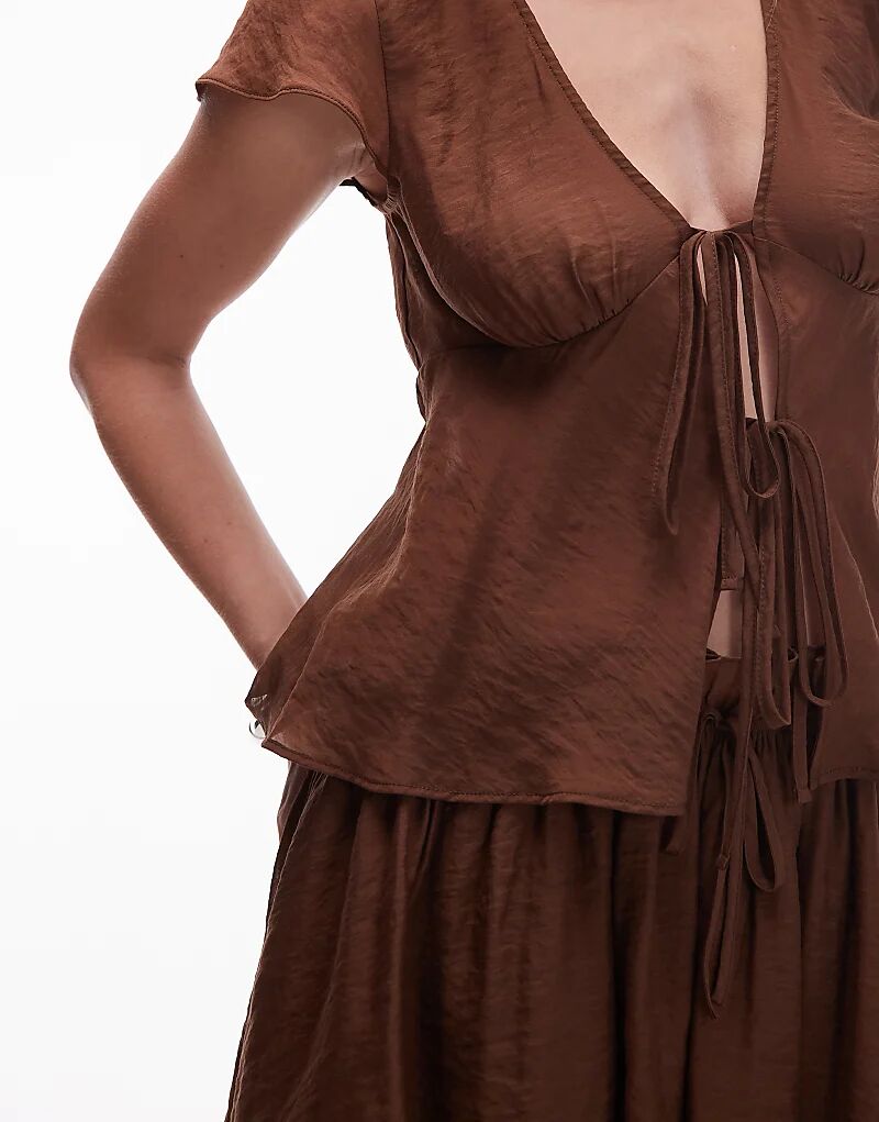Коричневый топ Topshop с завязкой спереди 4 624₽