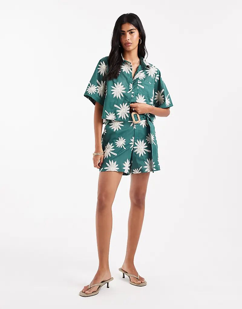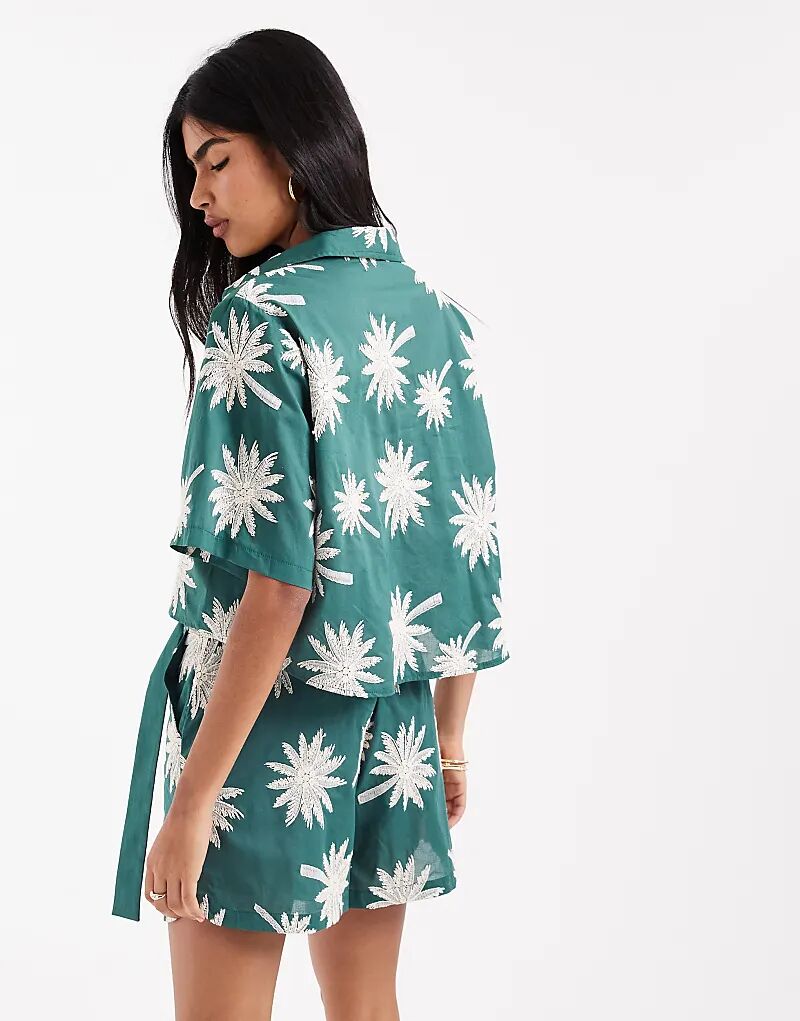 Укороченная рубашка ASOS DESIGN с вышивкой зеленого цвета