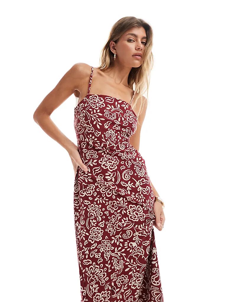 Платье миди ONLY с завязкой сзади, бордовый узор пейсли