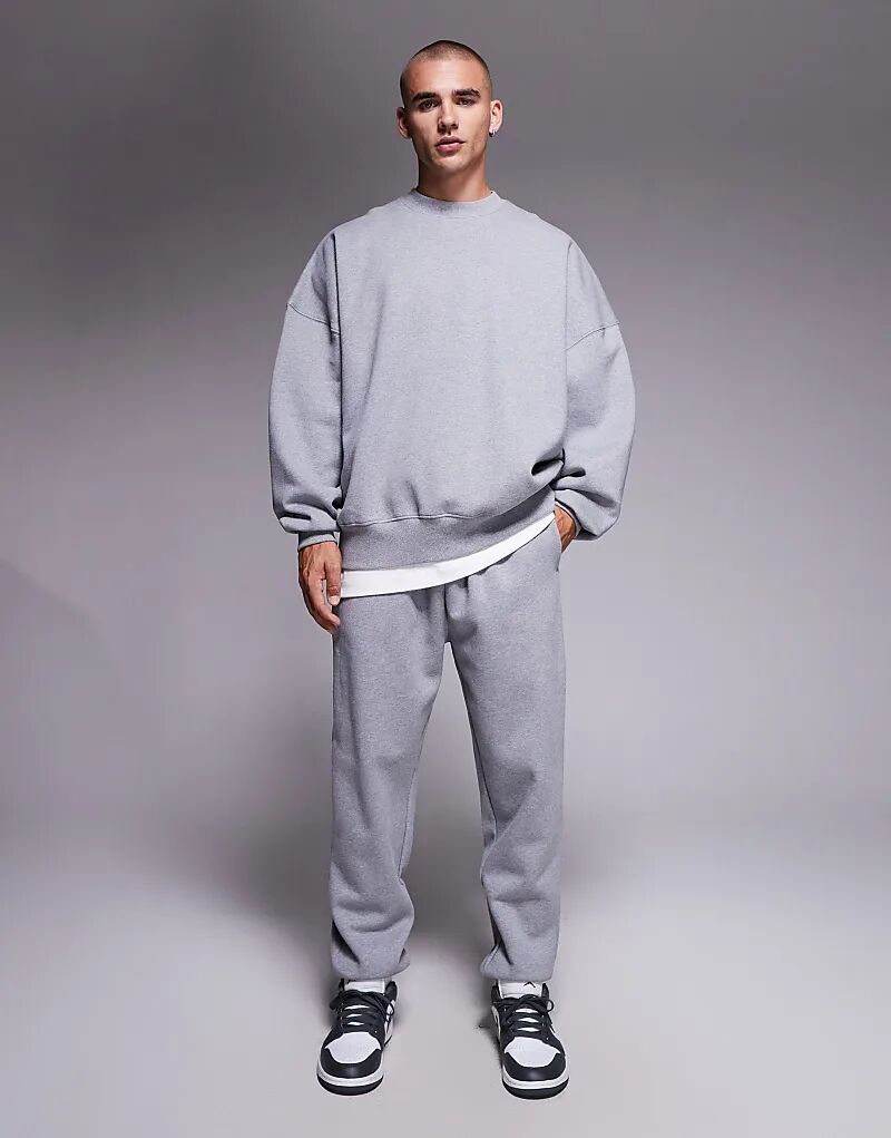 Премиальные плотные спортивные брюки ASOS DESIGN oversize плотностью 400 г/м², цвет: серый меланж