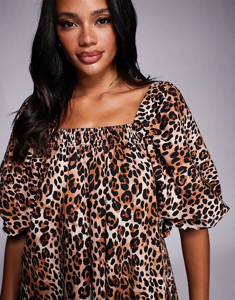 Мини-платье River Island с рукавами-фонариками и леопардовым принтом 3 192₽