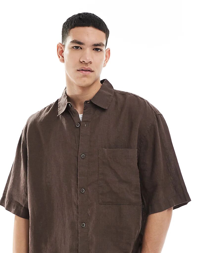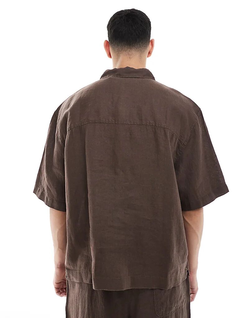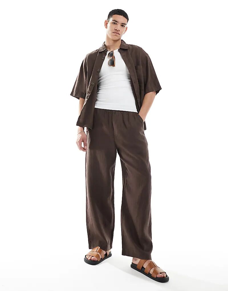 Рубашка Pull&Bear из 100% льна коричневого цвета — часть комплекта