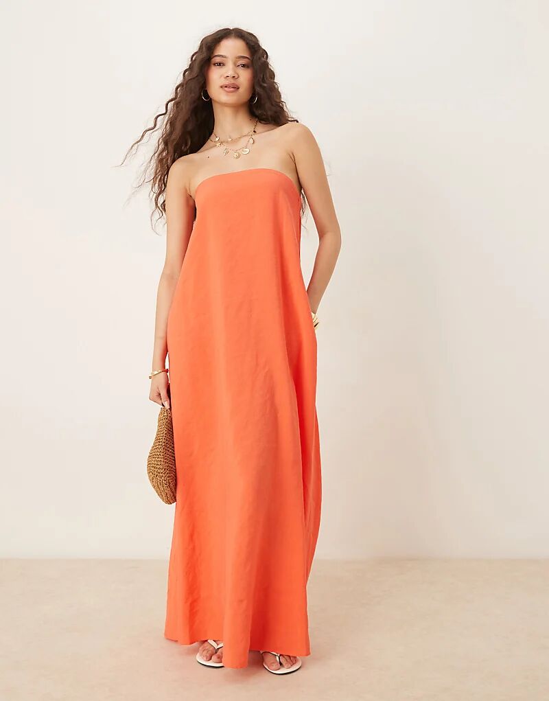 Длинное платье-бандо из купро ASOS DESIGN красного цвета