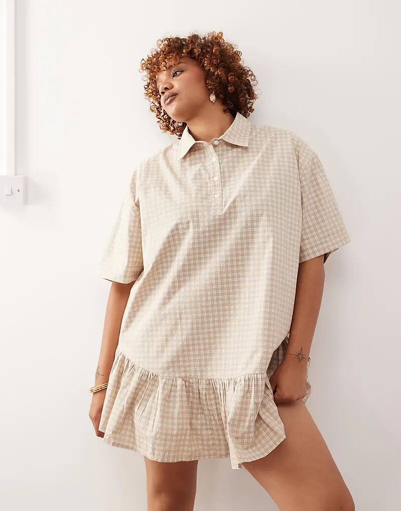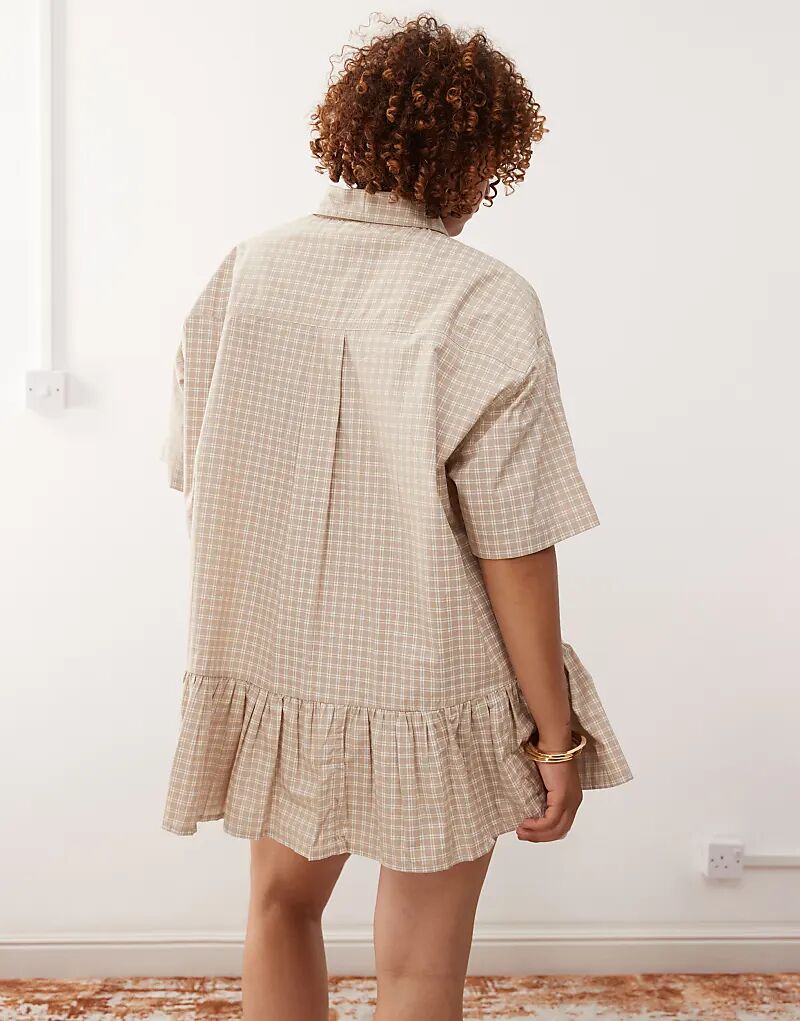 Платье-рубашка COLLUSION Plus с плиссированной юбкой в нейтральную клетку 3 855₽