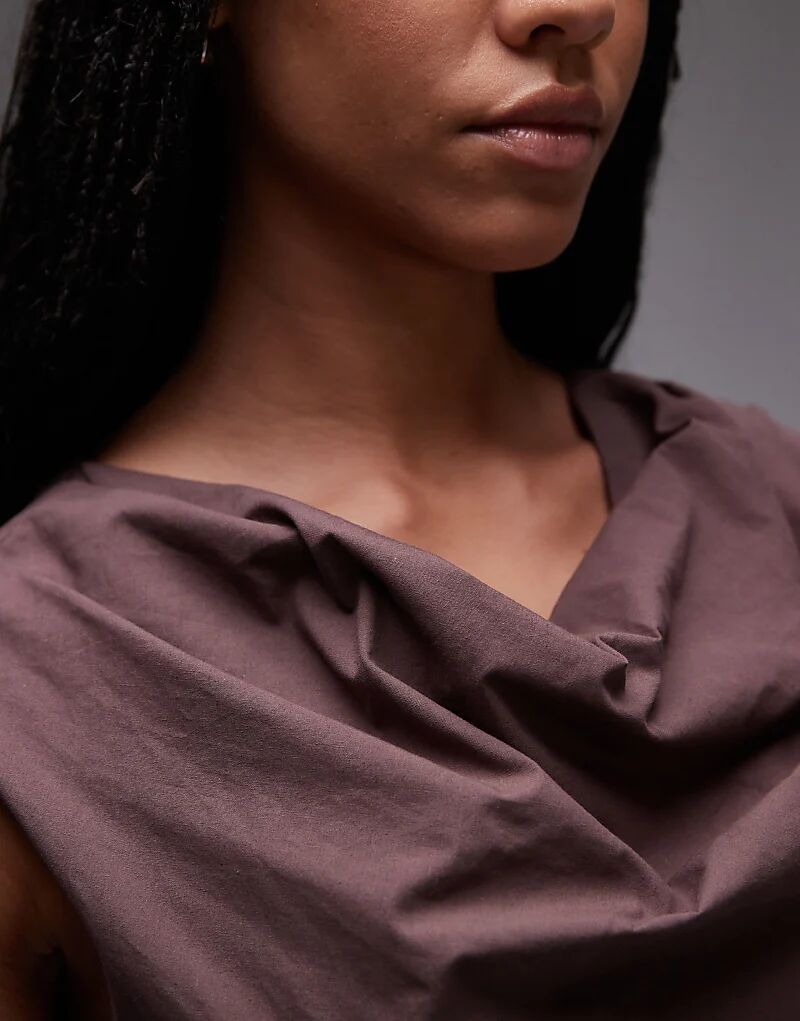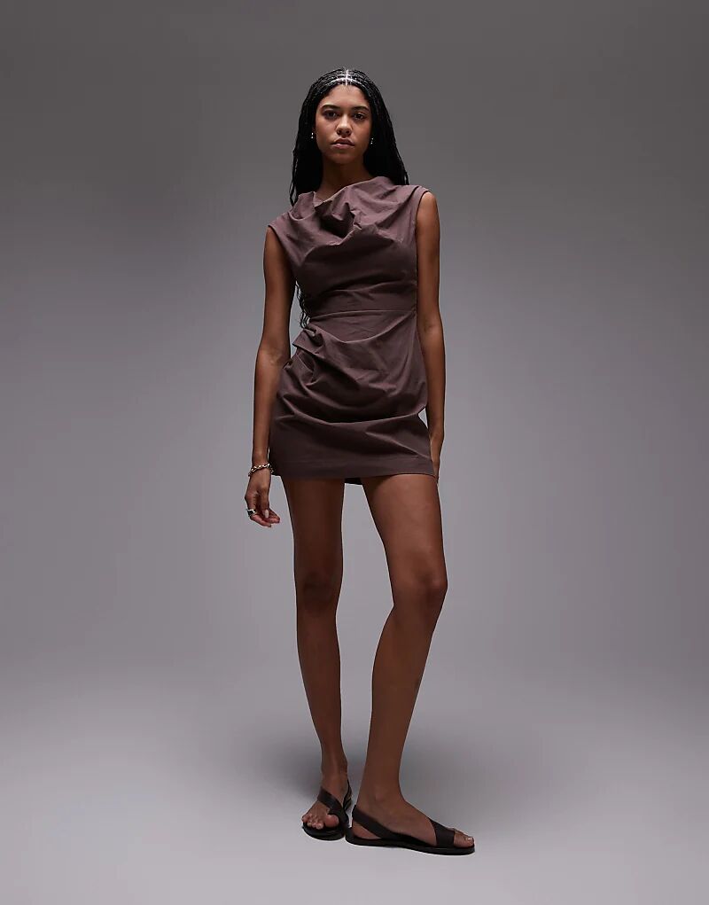 Мини-платье Topshop с драпировкой и отделкой шоколадного цвета