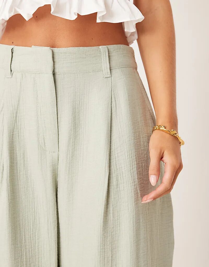 ASOS DESIGN Petite Текстурированные брюки-бочонки цвета шалфея