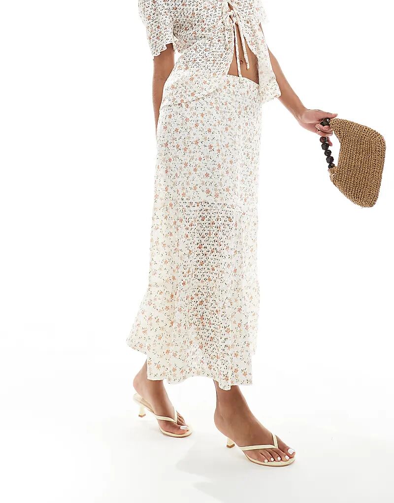 Юбка-бохо с цветочным принтом Object в кремовом цвете