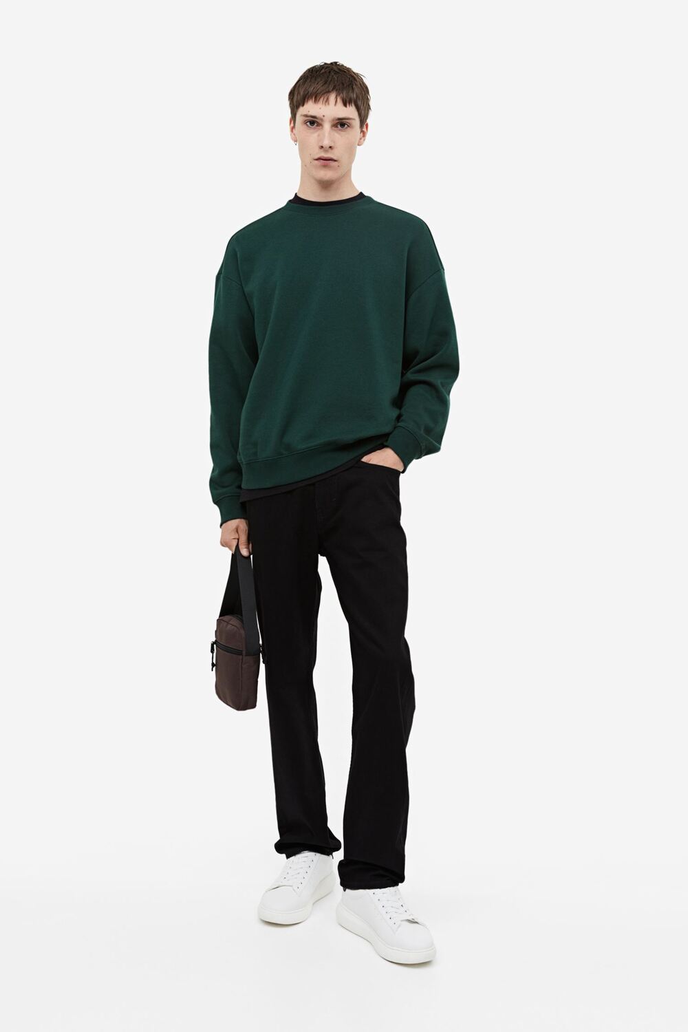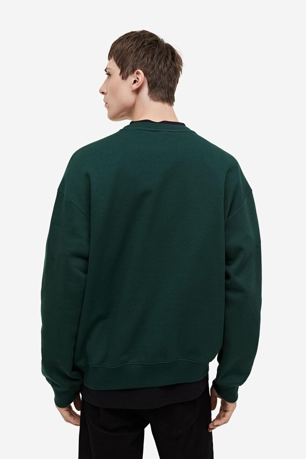 Свитшот из смесового хлопка. Свободный фасон с заниженной линией плеч и трикотажной резинкой по вырезу горловины, манжетам и нижнему краю. Мягкий начес внутри.
