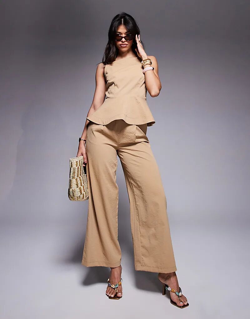 Топ-комбинезон с баской и лифом ASOS DESIGN, бежевый