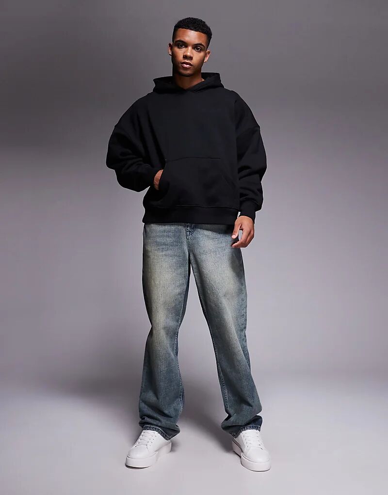 Толстовка ASOS DESIGN премиум-класса из плотной ткани оверсайз черного цвета плотностью 400 г/м²
