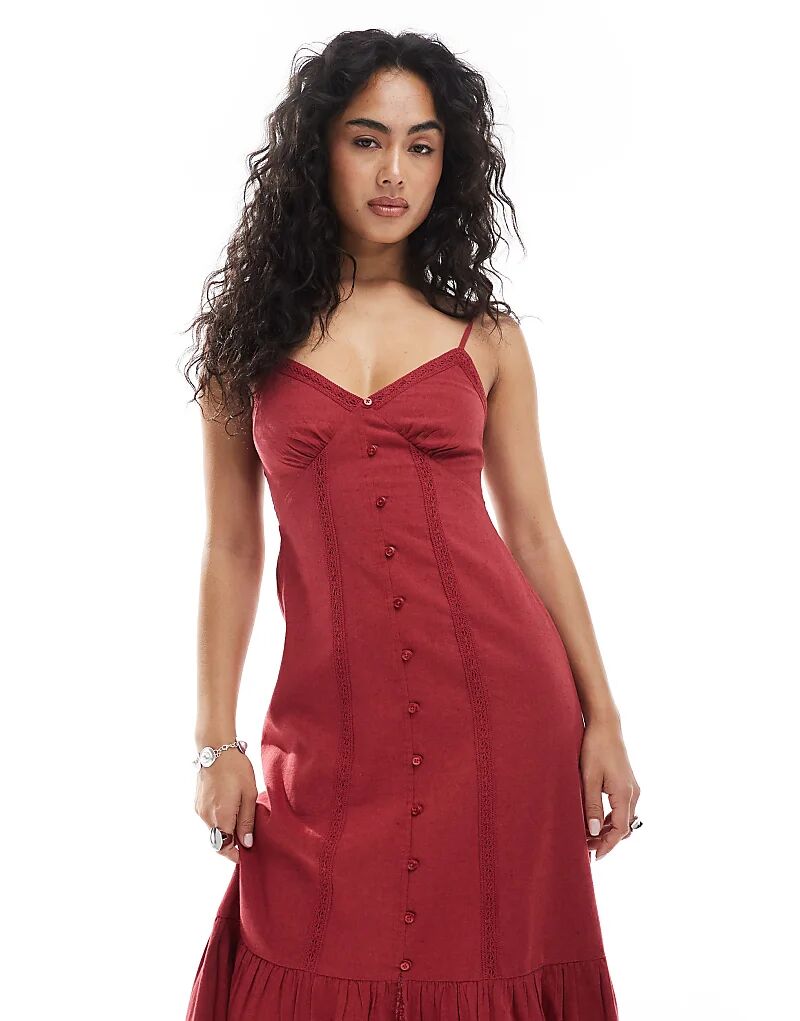 Платье миди New Look на пуговицах бордового цвета 5 266₽