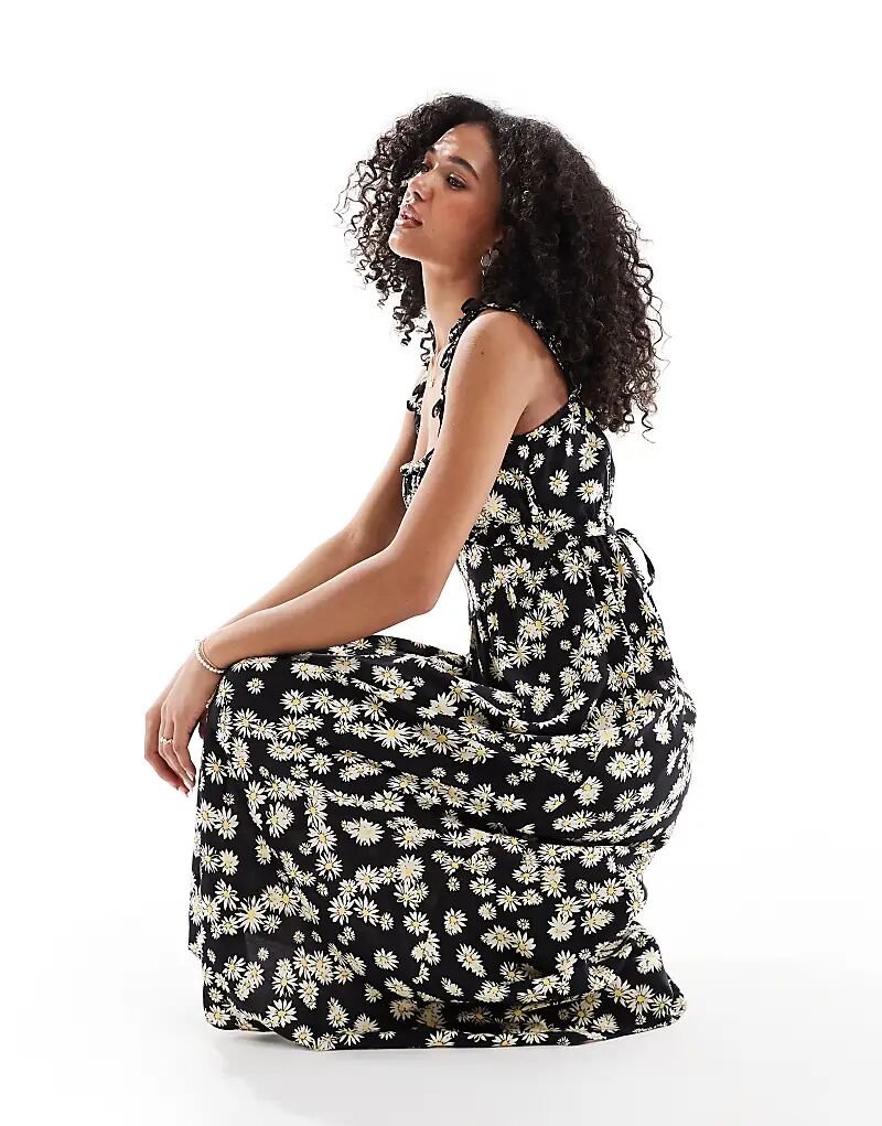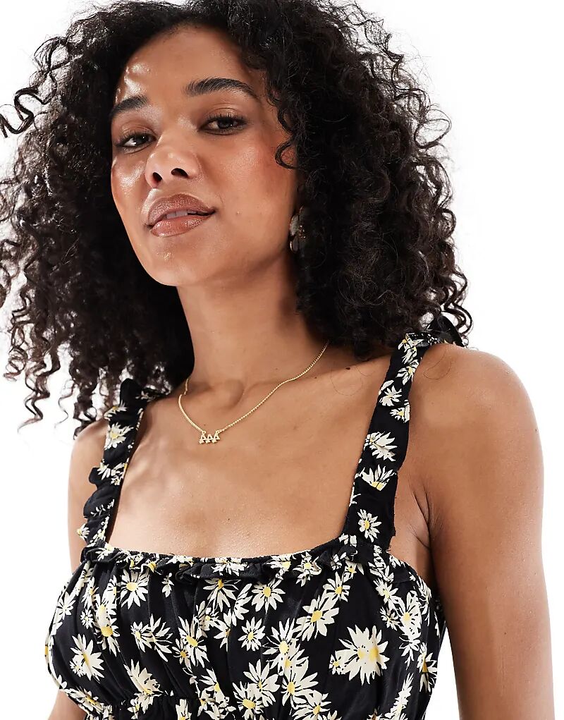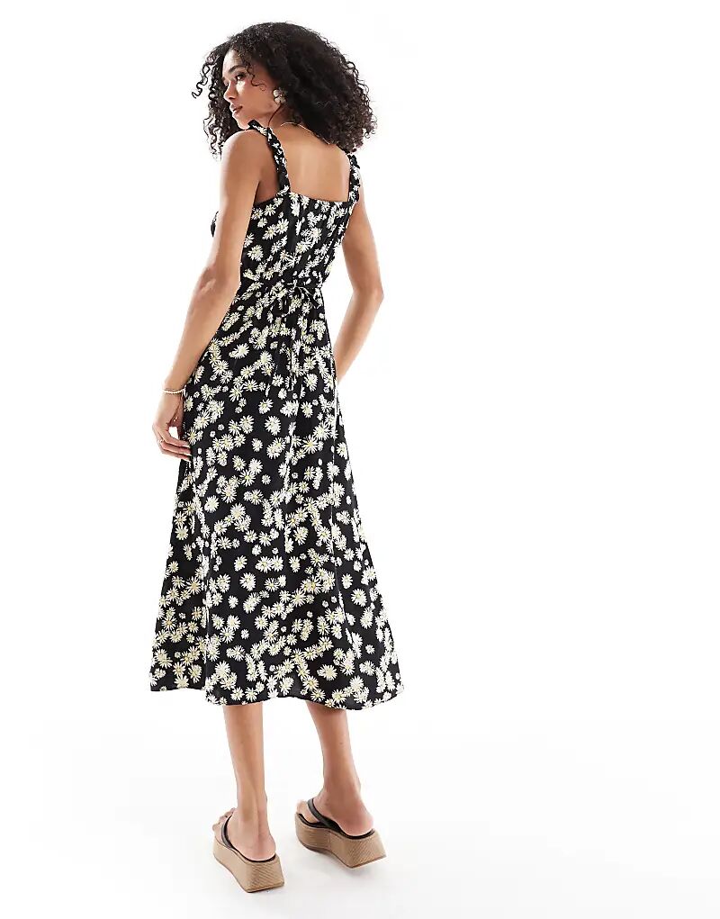 Платье миди New Look с цветочным принтом и бретелями, черное