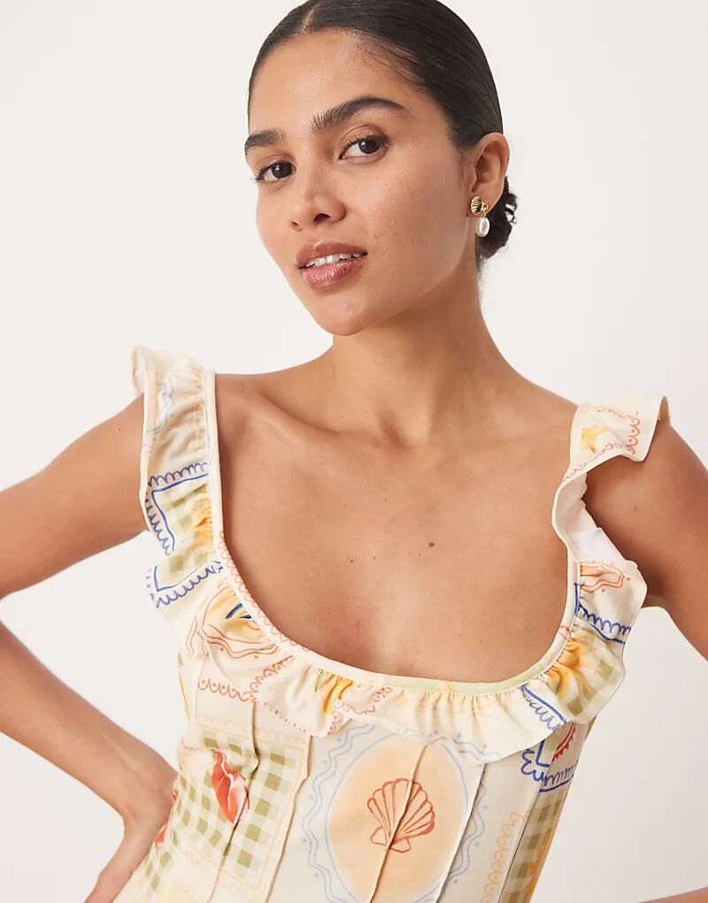 Мини-платье ASOS DESIGN с оборкой спереди и бретелями, с принтом открытки 4 205₽
