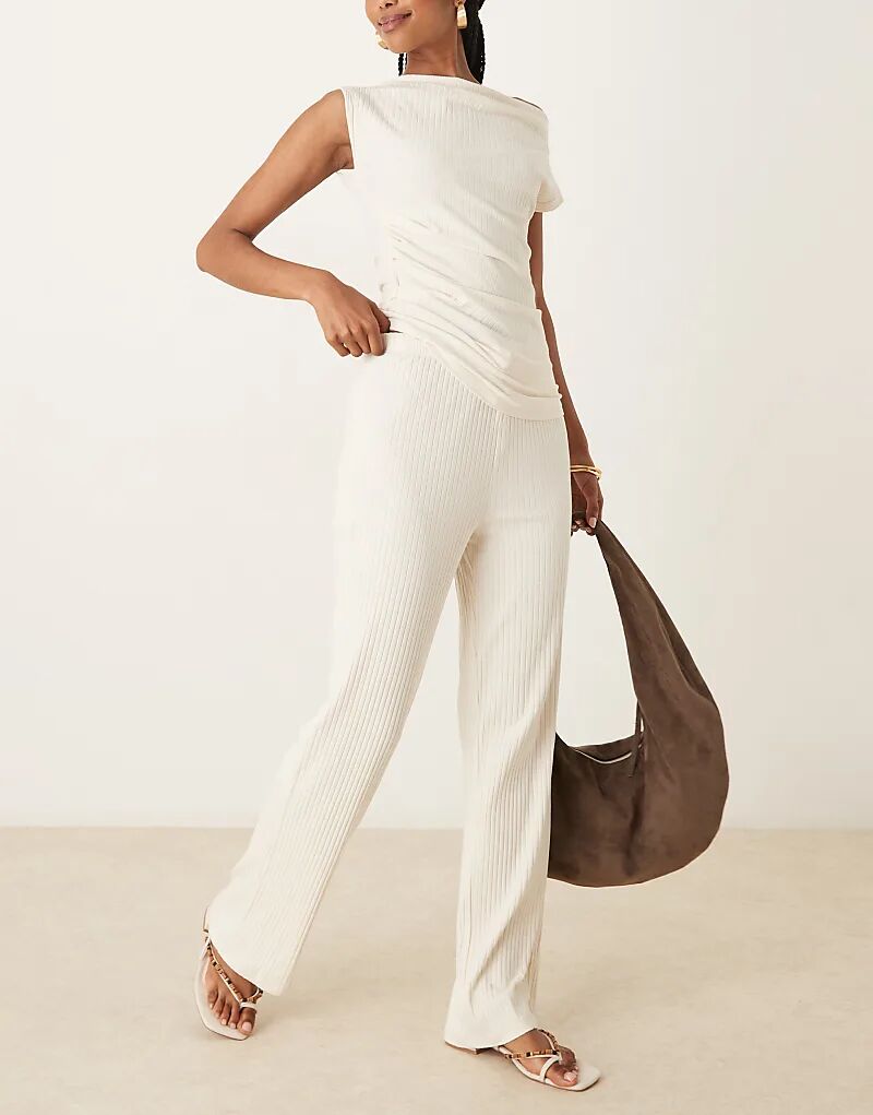 Широкие брюки Vila в рубчик кремового цвета