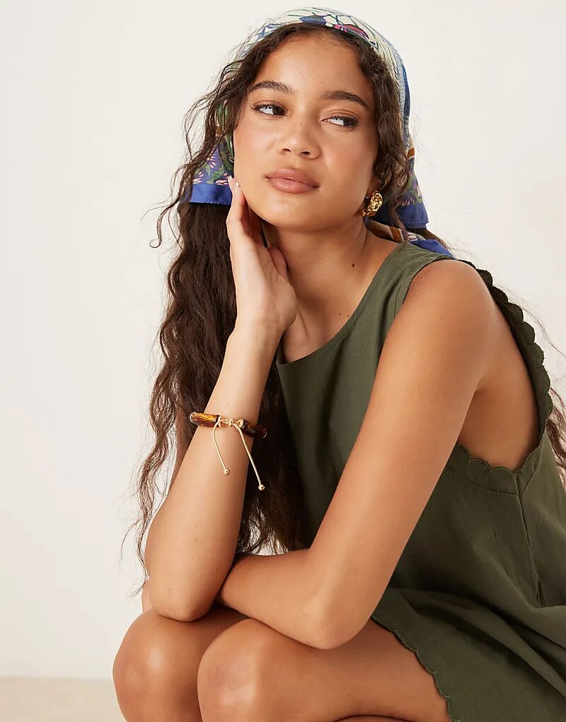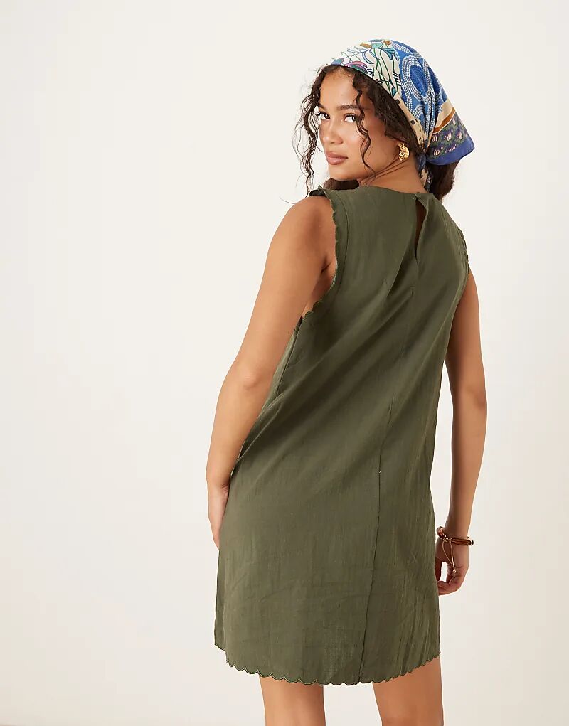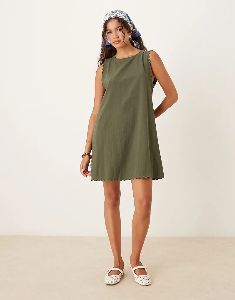 Мини-платье Vila из хлопка с фестончатым краем цвета хаки