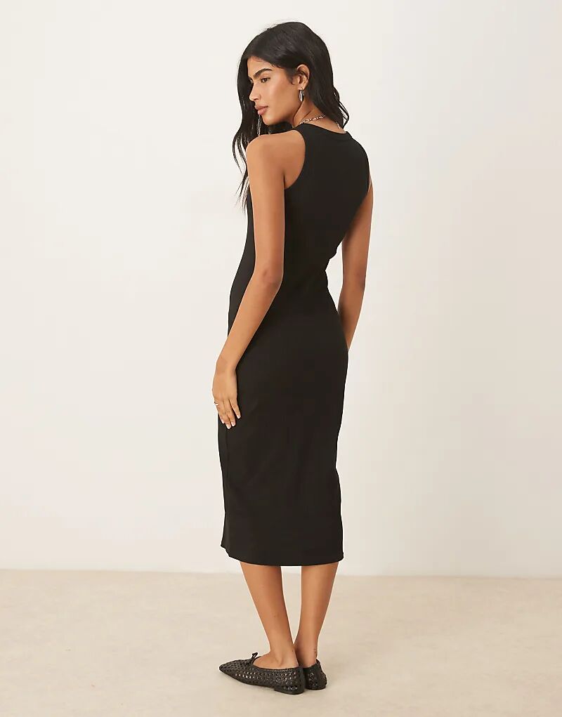 Платье миди Pimkie из хлопка в рубчик с воротником-борцовкой, черное