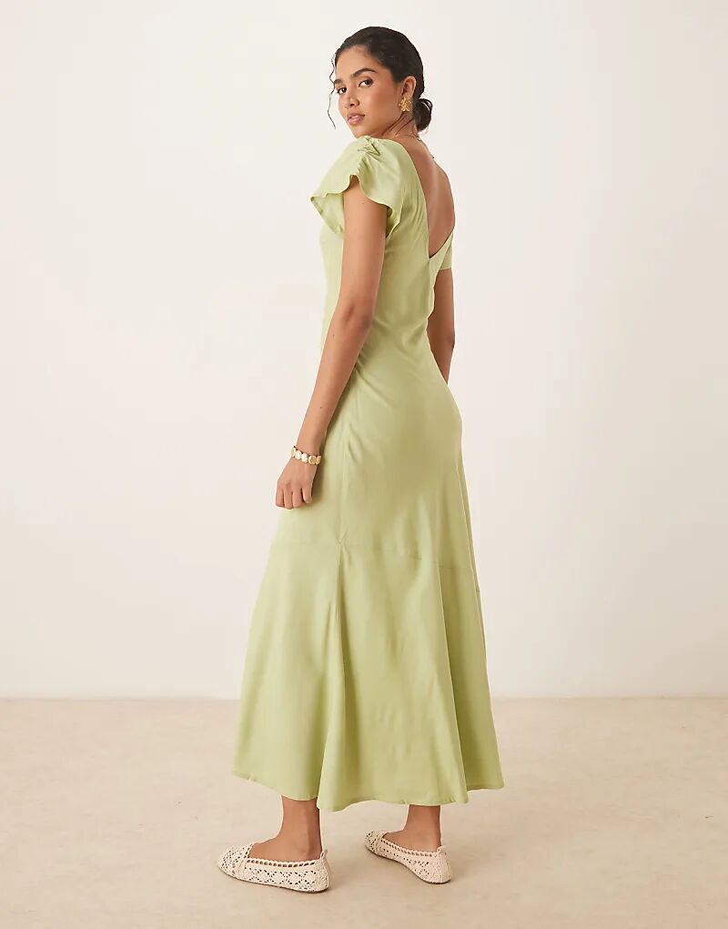 Платье мидакси ASOS DESIGN с рукавами-ангелами цвета шалфея