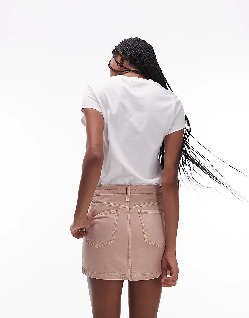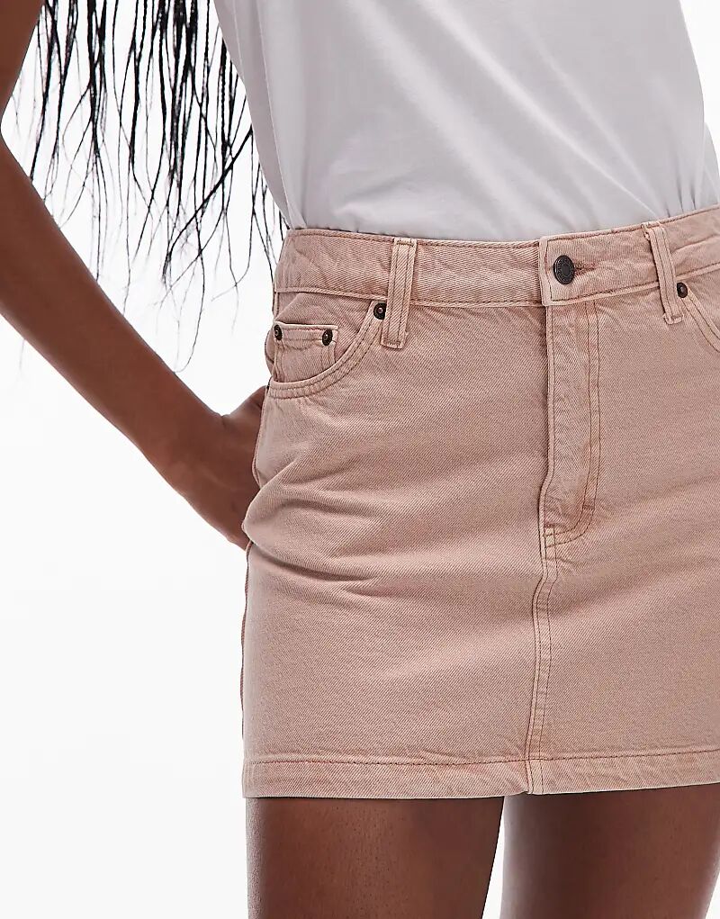 Мини-юбка с ламбрекеном из денима Topshop в цвете румян 4 091₽