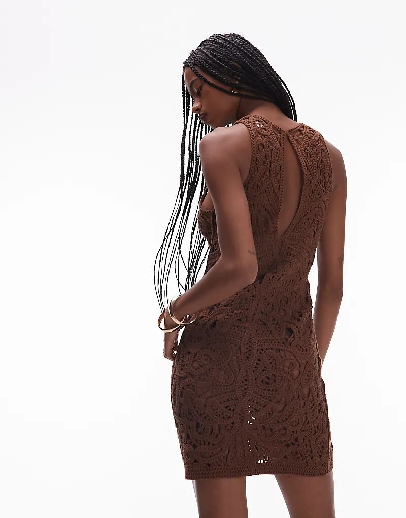 Мини-платье Topshop, связанное крючком премиум-класса, шоколадного цвета