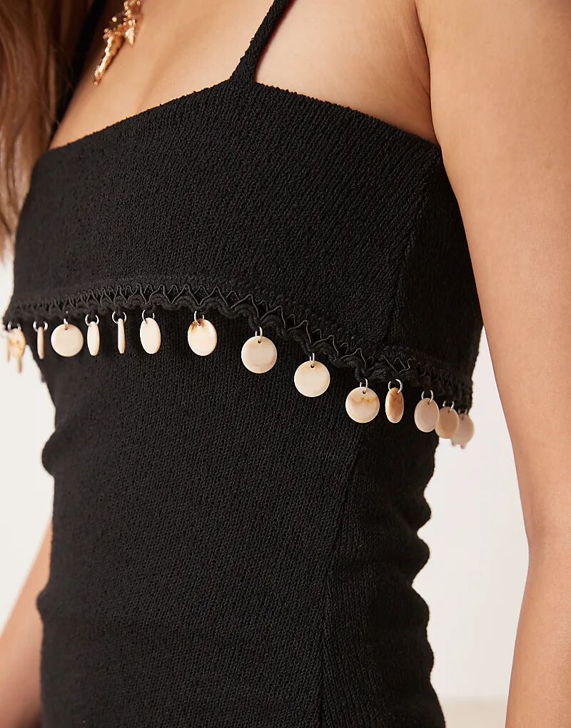Мини-платье ASOS DESIGN с отделкой из ракушек черного цвета