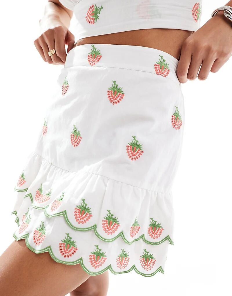 Мини-юбка с вышитым рисунком клубники от New Look белого цвета