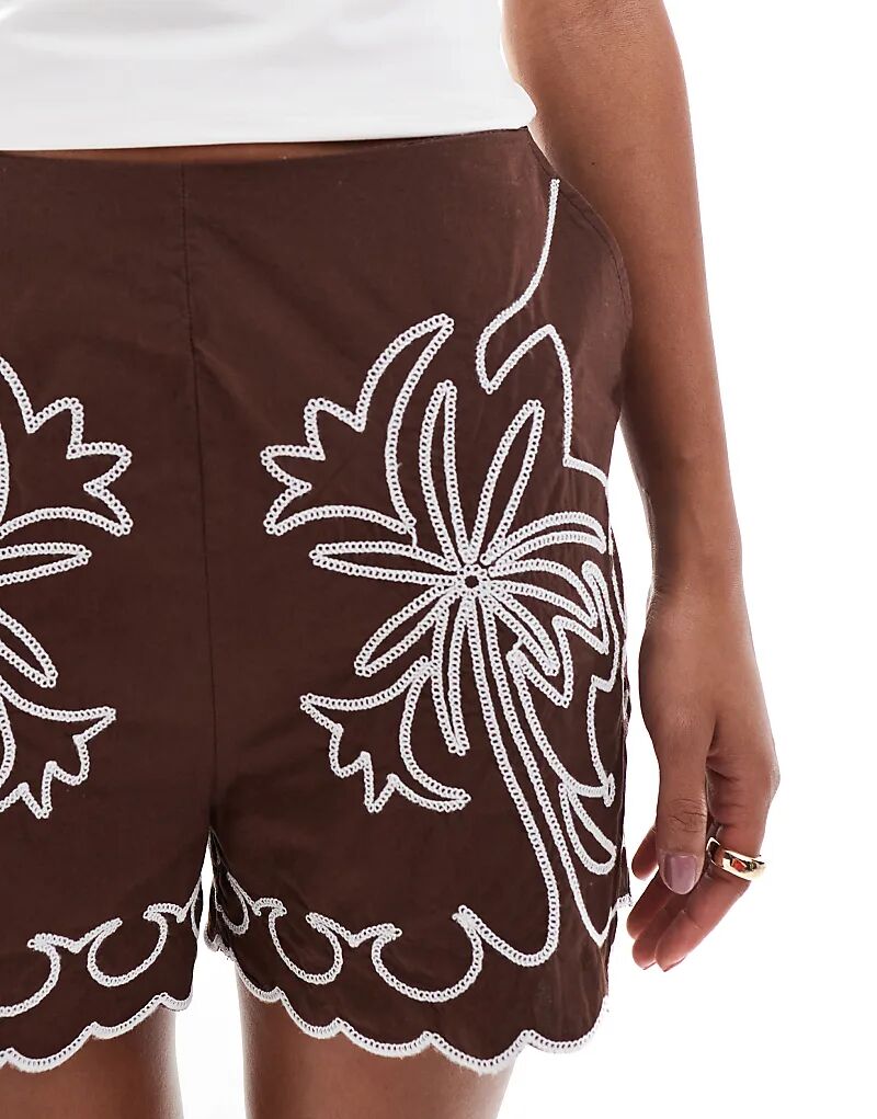 Коричневые шорты с вышивкой Stradivarius