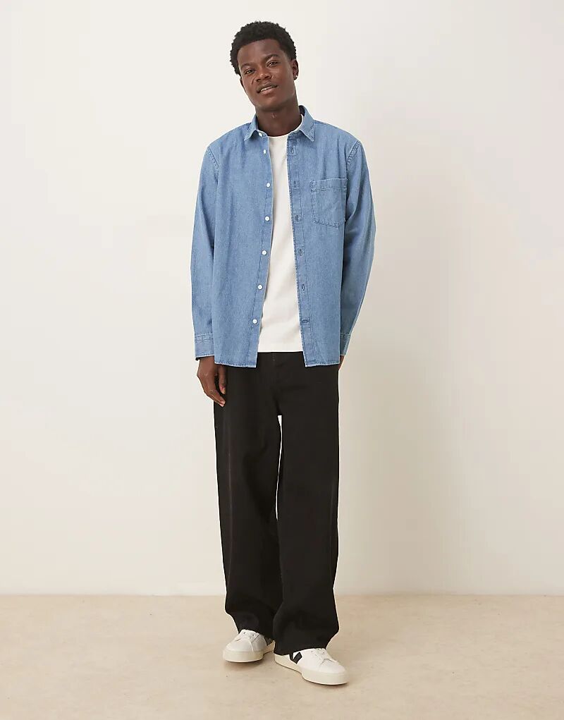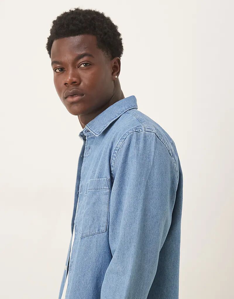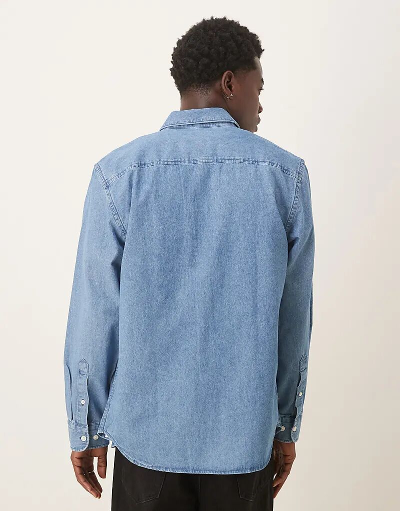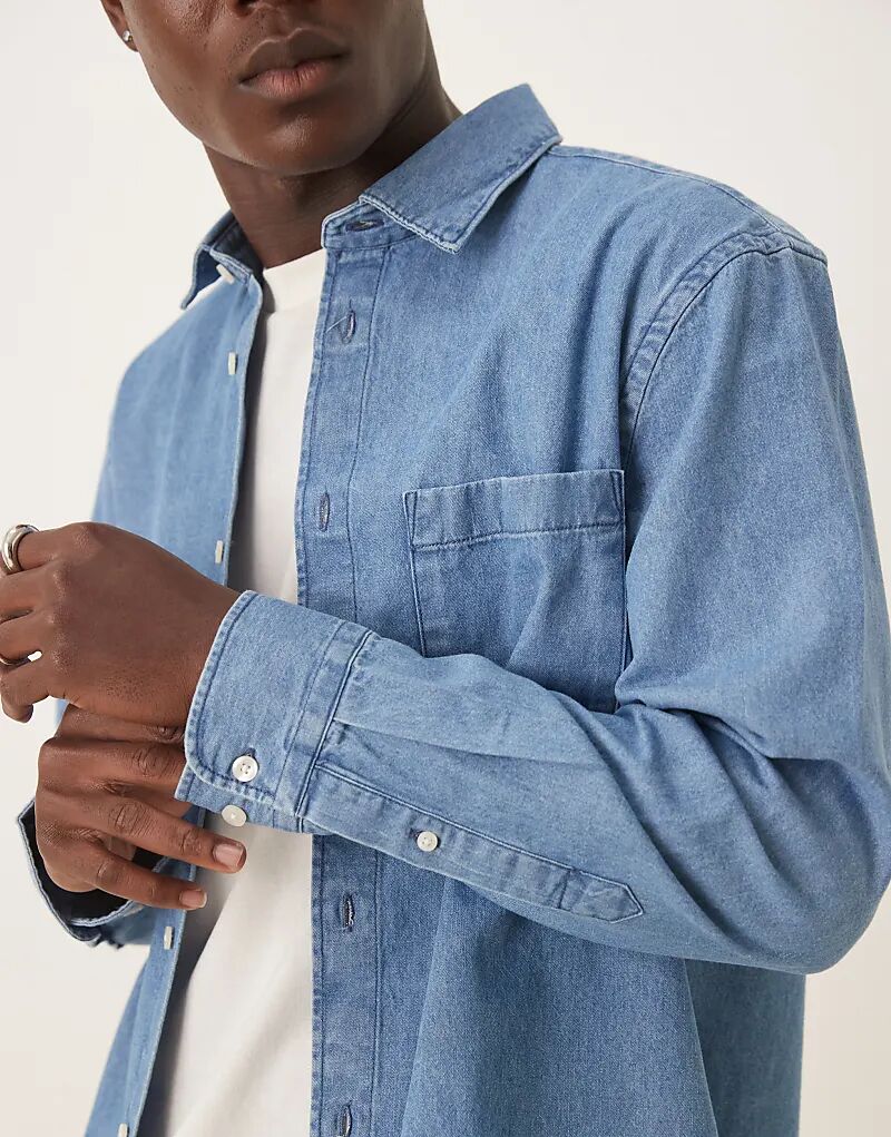 Рубашка из денима Selected Homme средне-синего цвета