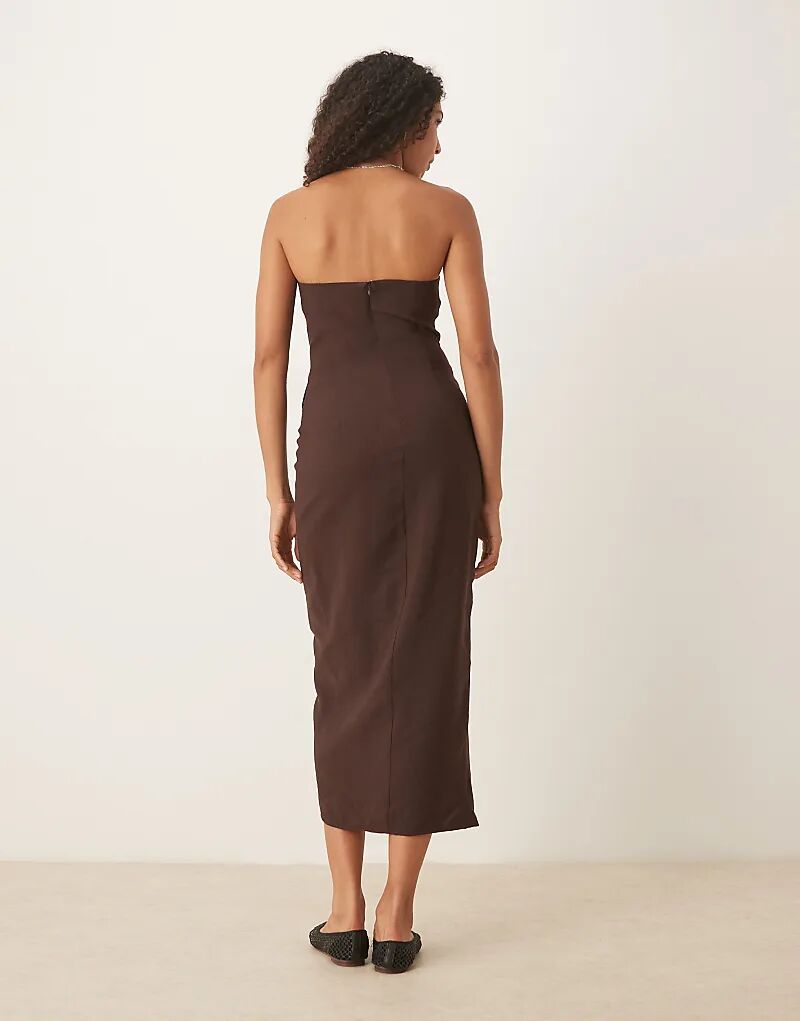 Платье-карандаш миди ASOS DESIGN бандо шоколадного цвета