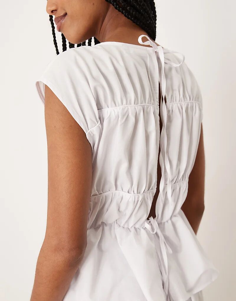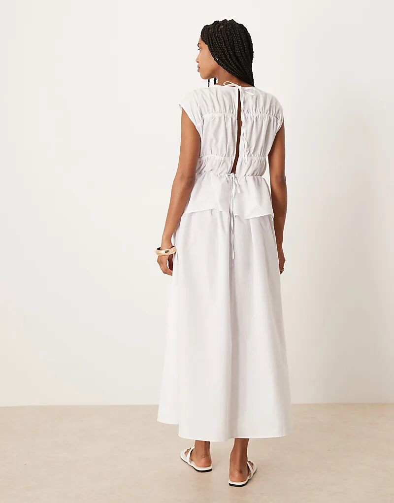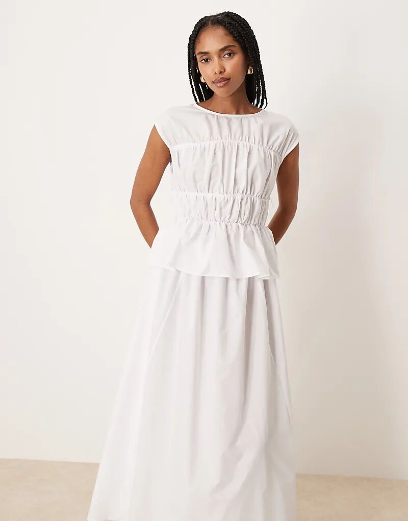 Платье макси со сборками и вставками ASOS DESIGN белого цвета