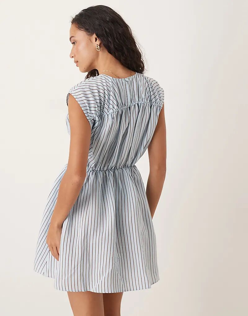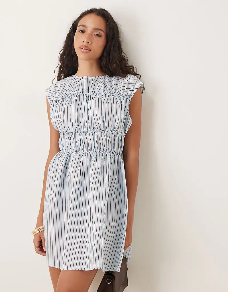 Мини-платье с лифом и сборками в синюю полоску от ASOS DESIGN