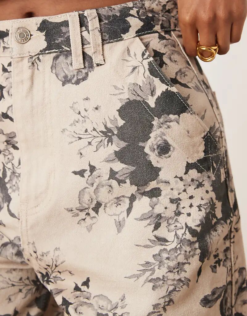 Брюки-бочонки ASOS DESIGN с серо-коричневым цветочным принтом