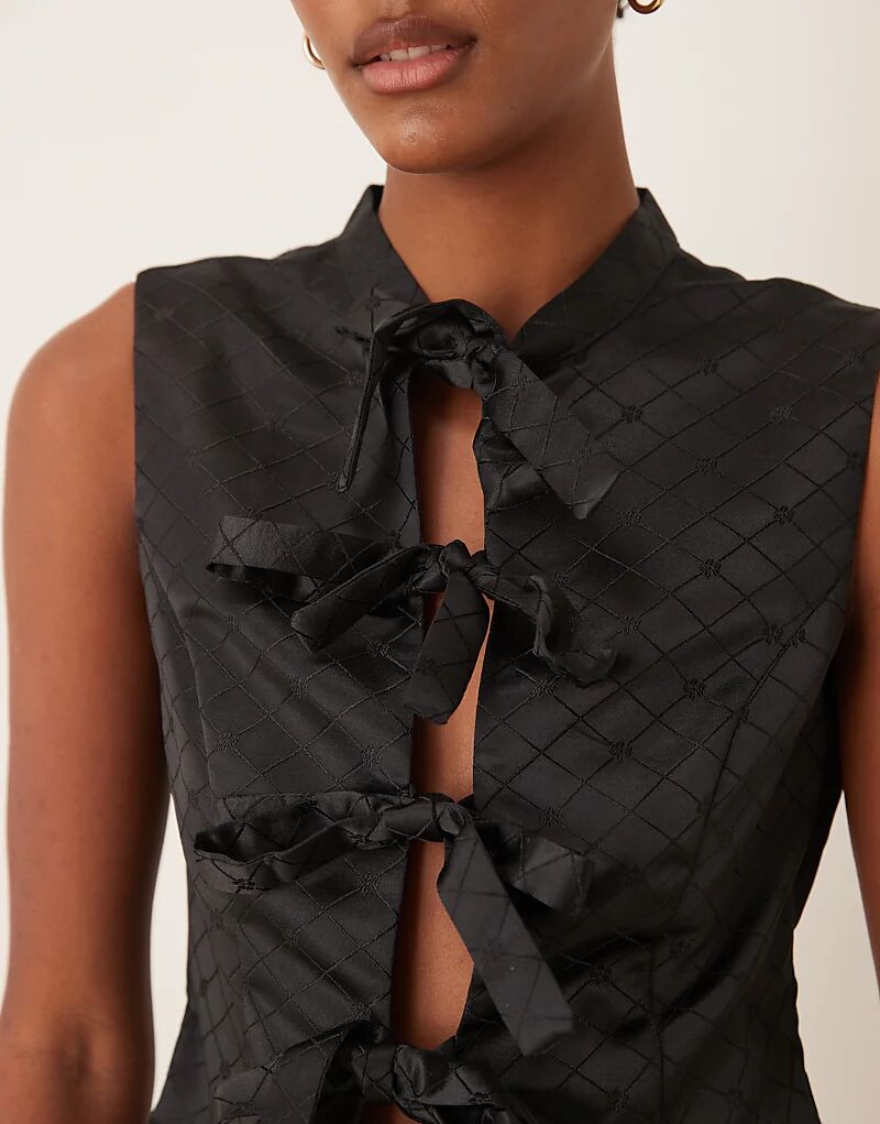 Гламурный топ с завязкой-бантом спереди в черную клетку