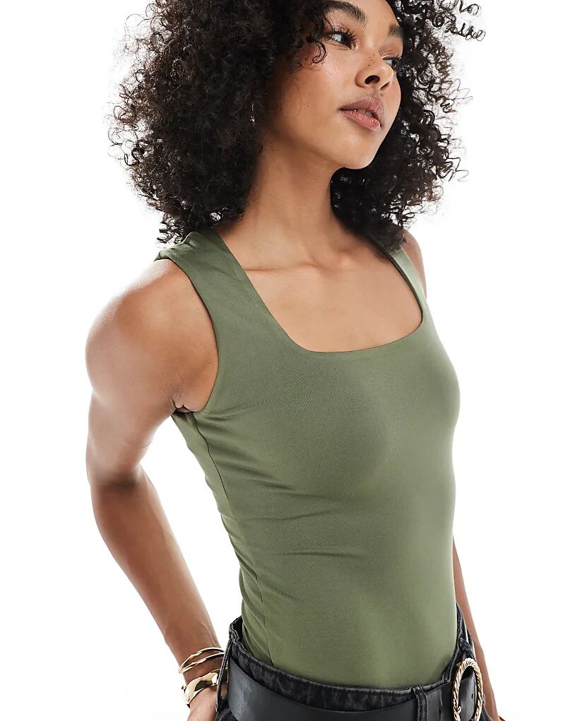Боди New Look с квадратным вырезом цвета хаки 2 773₽