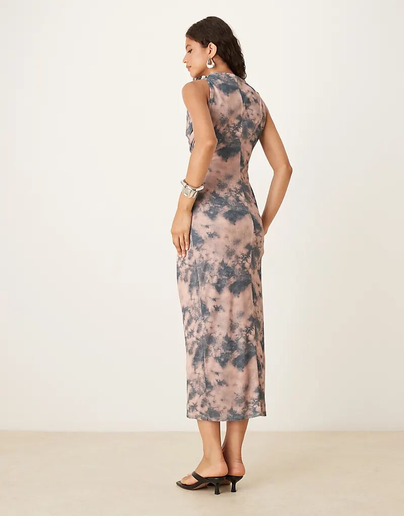 Платье миди ASOS DESIGN без рукавов со сборками и сетчатым принтом
