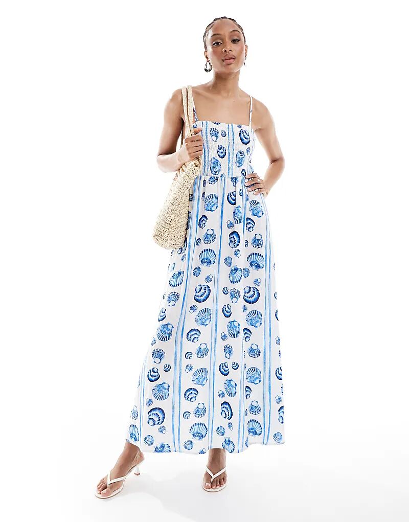 Платье миди Vero Moda Tall с принтом ракушек синего цвета