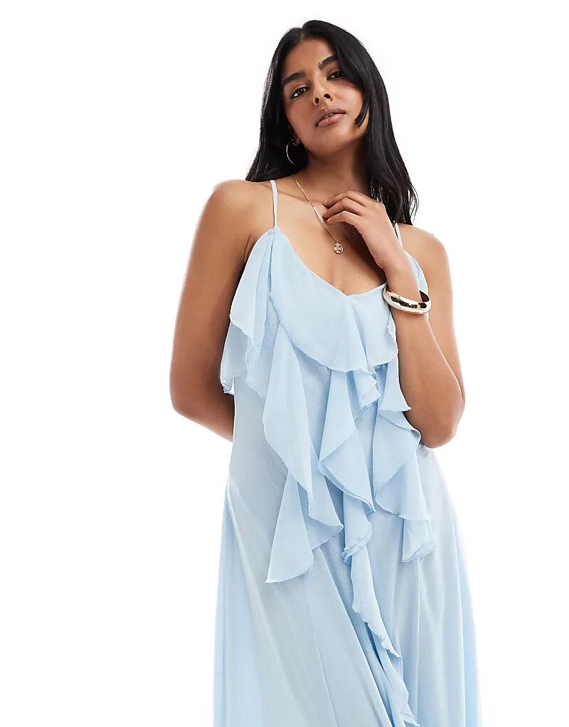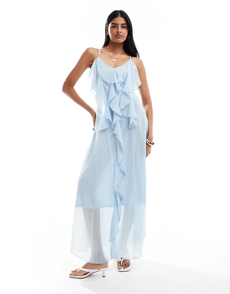 Платье макси с рюшами Vero Moda в стиле бохо синего цвета