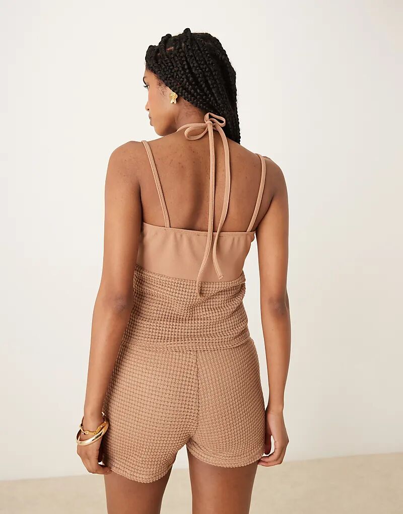 Топ ASOS DESIGN крючком с халтер-воротником и отделкой бисером в цвете мокко
