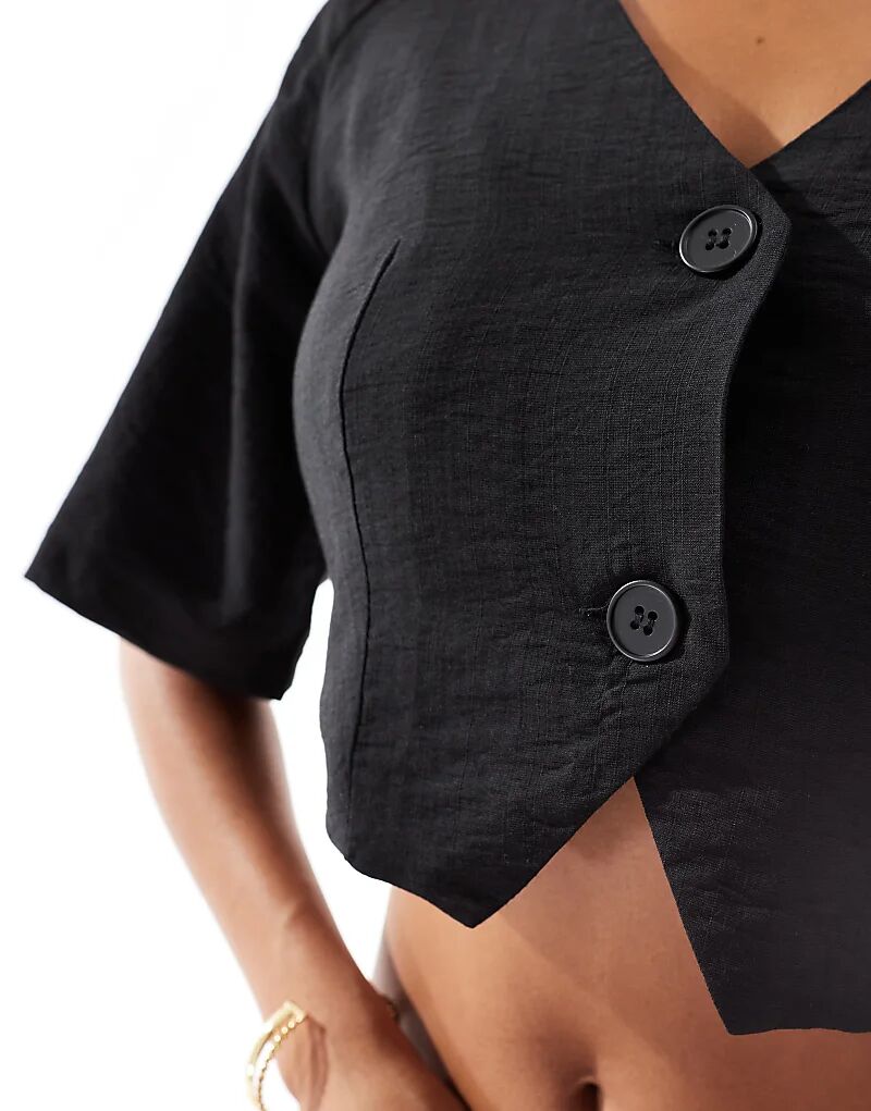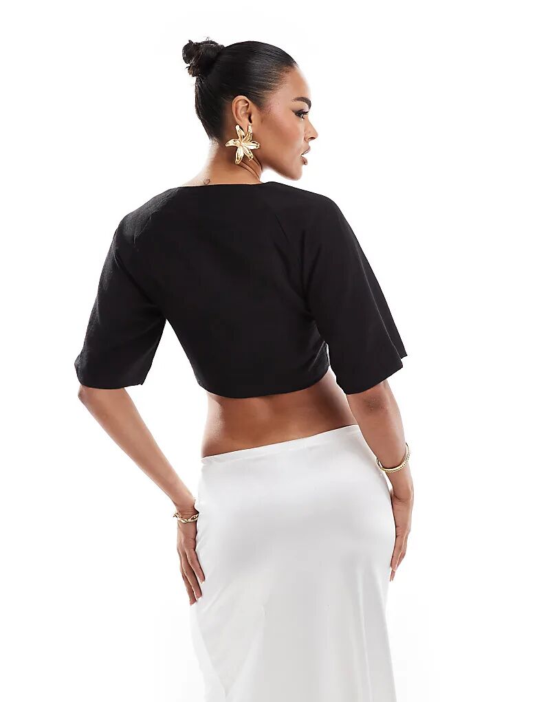 Укороченная рубашка Kaiia из льняного материала черного цвета