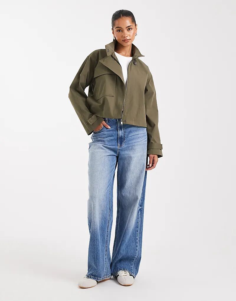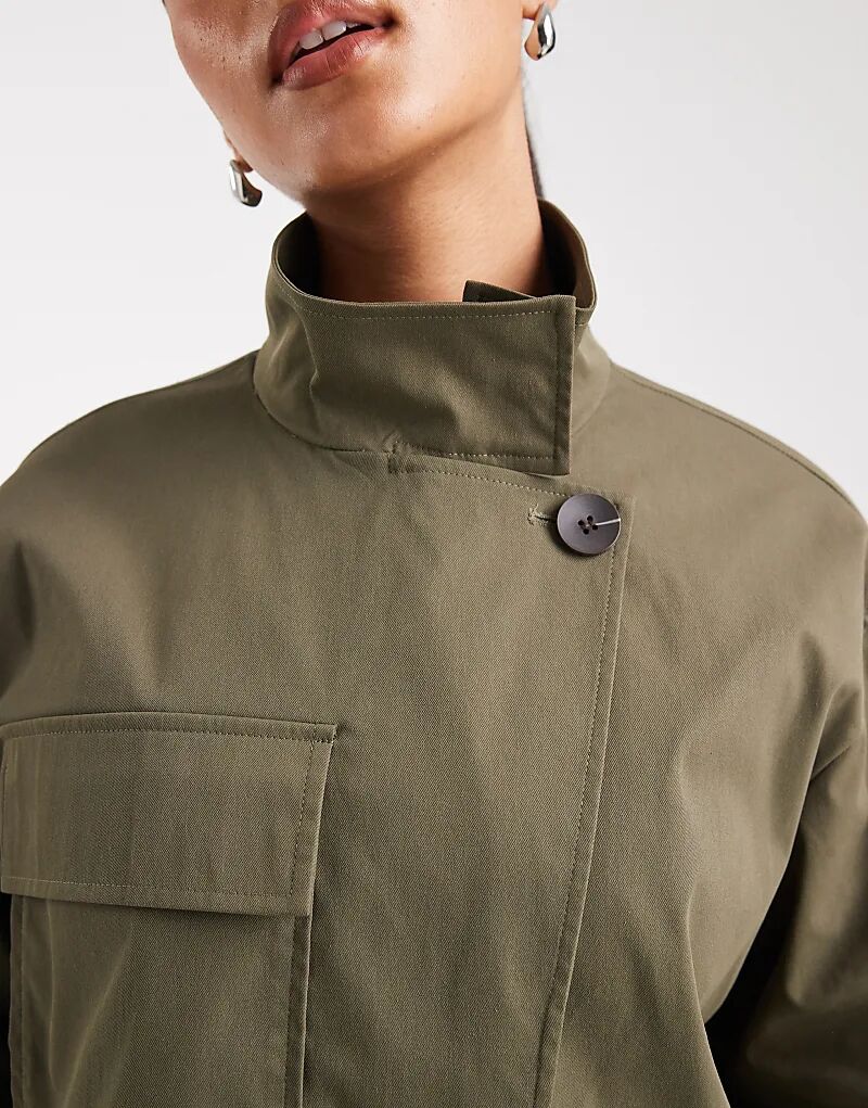 асимметричный укороченный тренчкот цвета хаки