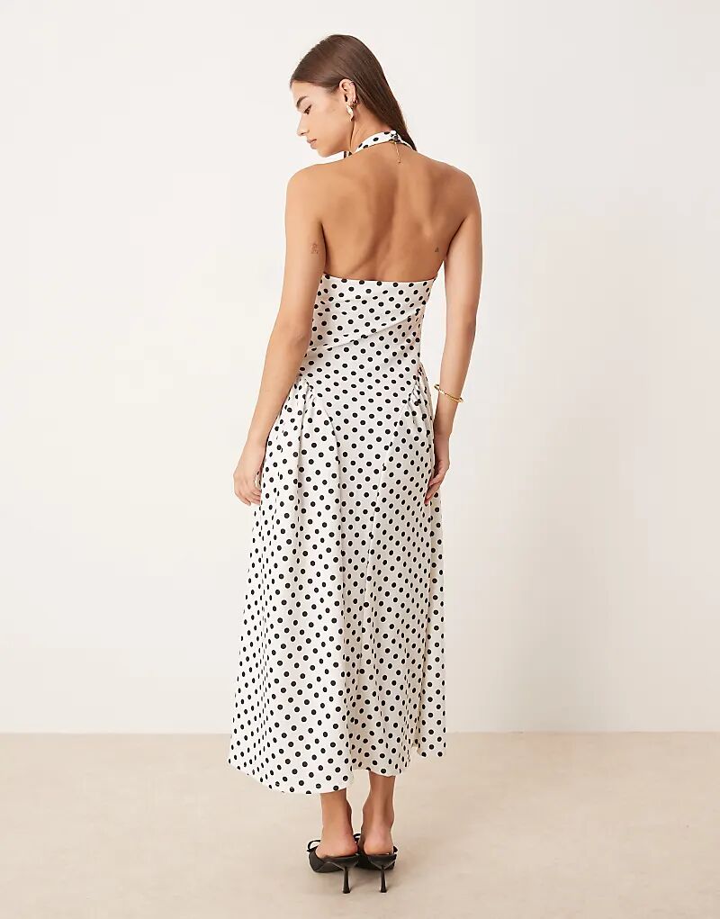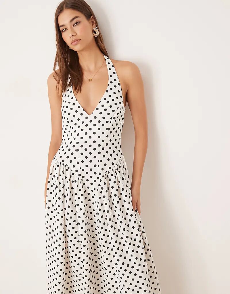 Платье миди ASOS DESIGN с халтер-воротником, корсетом и вырезами-годе в горошек