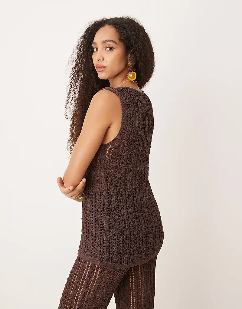 Вязаный крючком топ без рукавов Mango коричневого цвета