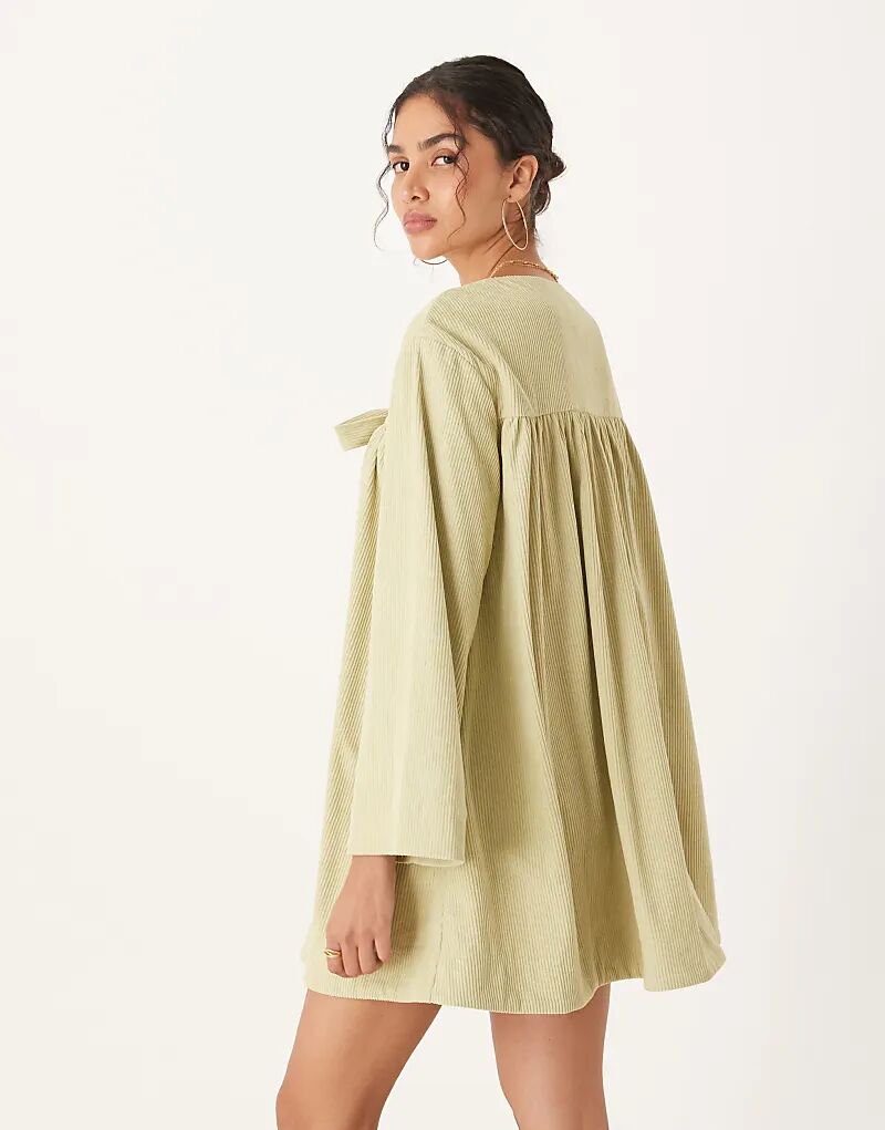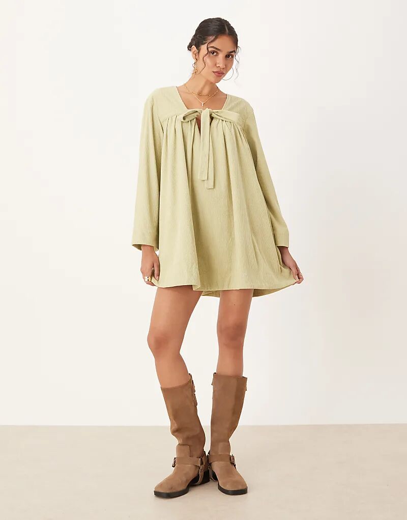 Платье-рубашка мини ASOS DESIGN с завязками спереди цвета васаби, зимнее