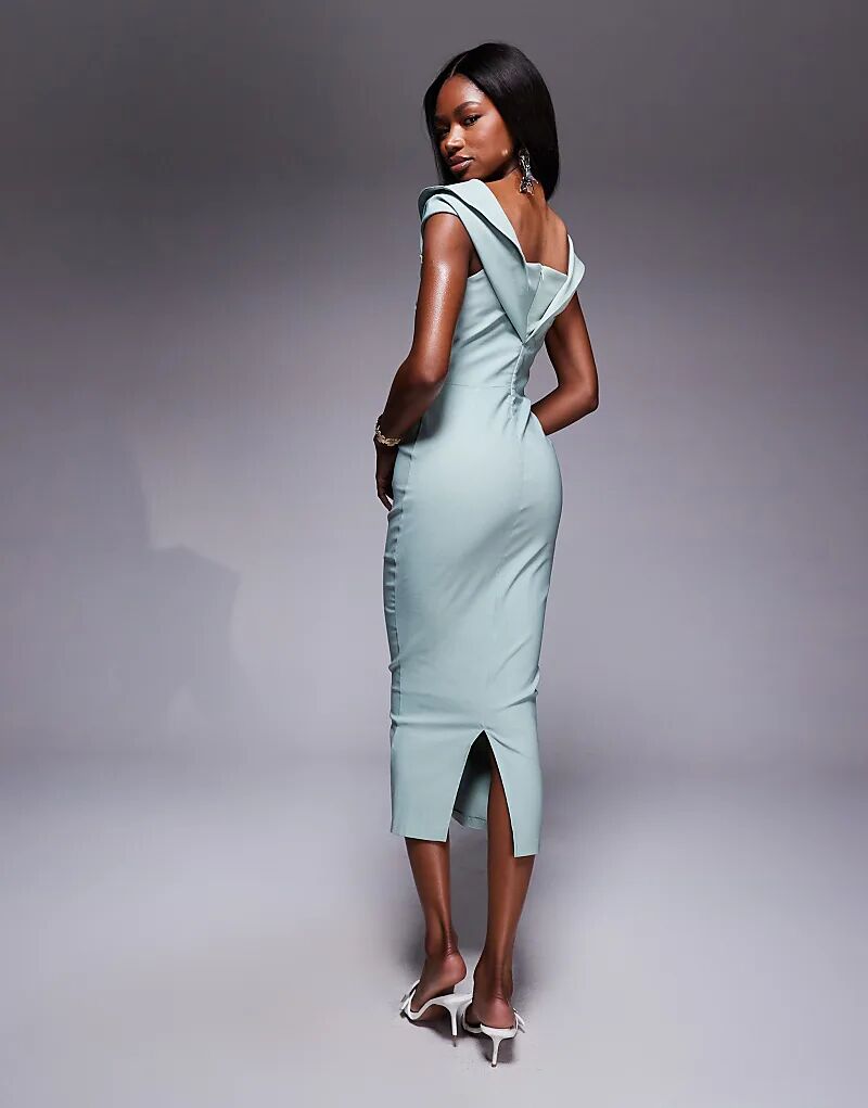 Платье Vesper bengaline с драпировкой на рукавах и мидакси в цвете шалфея
